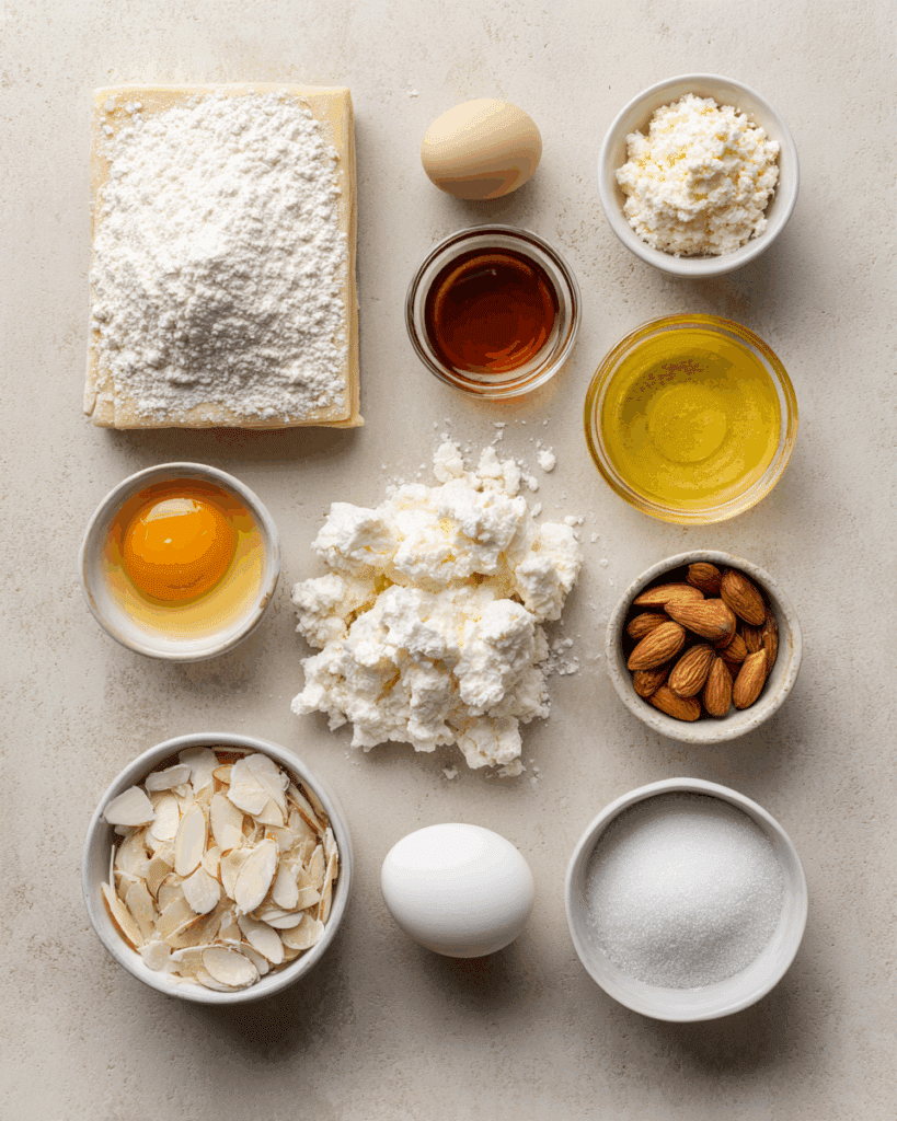 - Ricotta Cheese: 1 cup – Creamy and mild, this becomes the soft filling.