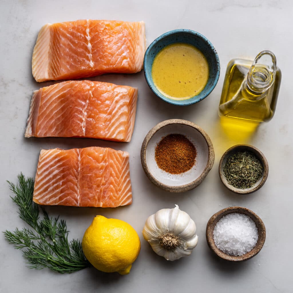 Dijon Mustard: This isn’t just a condiment, it is a functional ingredient that creates a protective barrier for the fish, keeping the interior moist while providing a bold, spicy punch.