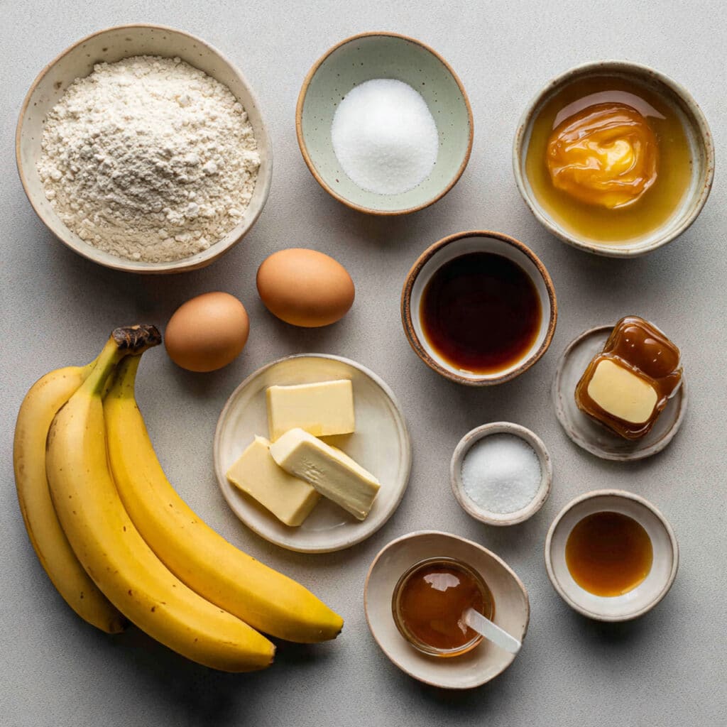 Ingredients in Banana Bread with Caramel Swirl