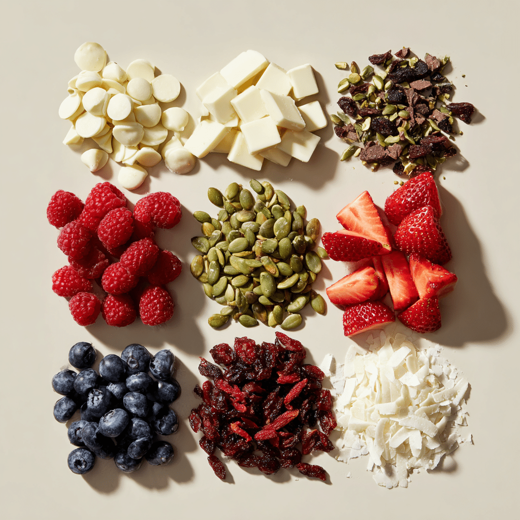 - Tropical Bark: Swap berries for dried mango, pineapple, and coconut.