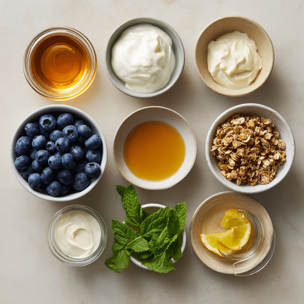 - Combine Ingredients: In a mixing bowl, stir together the yogurt, honey or maple syrup, vanilla extract, and lemon zest until smooth. Fold in the blueberries gently.