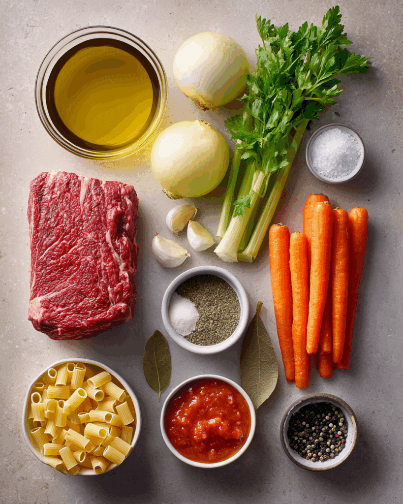 - Olive Oil: 2 tablespoons – For searing the beef and sautéing the aromatics.