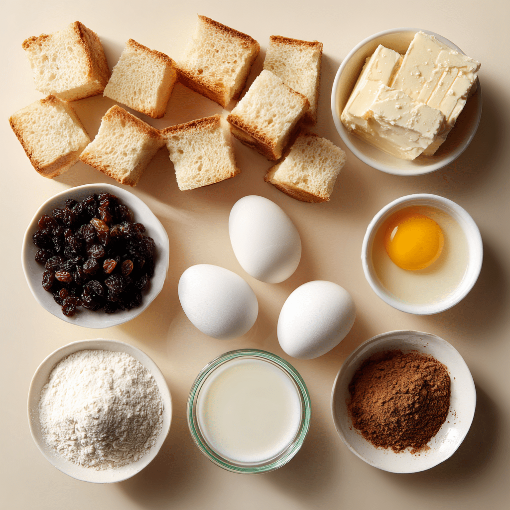 - Day-old Brioche Bread: 6 cups, cubed – its rich texture soaks up custard beautifully.
