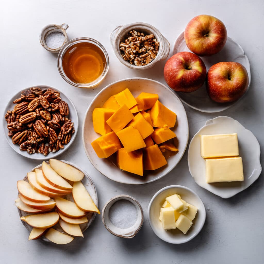 - Apples: 3 large, sliced. Adds juiciness and natural sweetness that balances the squash.