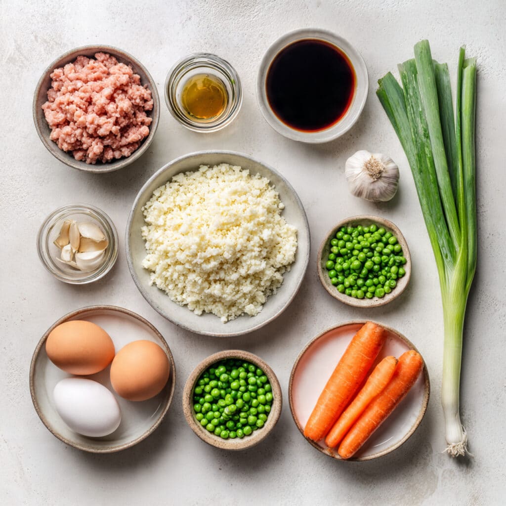 - Riced Cauliflower: 4 cups. Acts as the grain-free base that soaks up all the flavor.