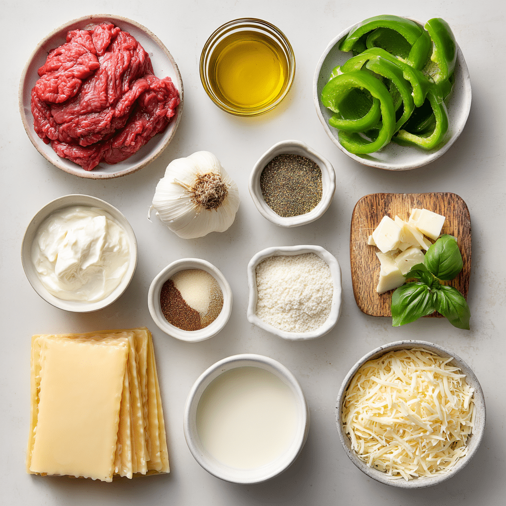 Ingredients in Cheesesteak Stuffed Lasagna