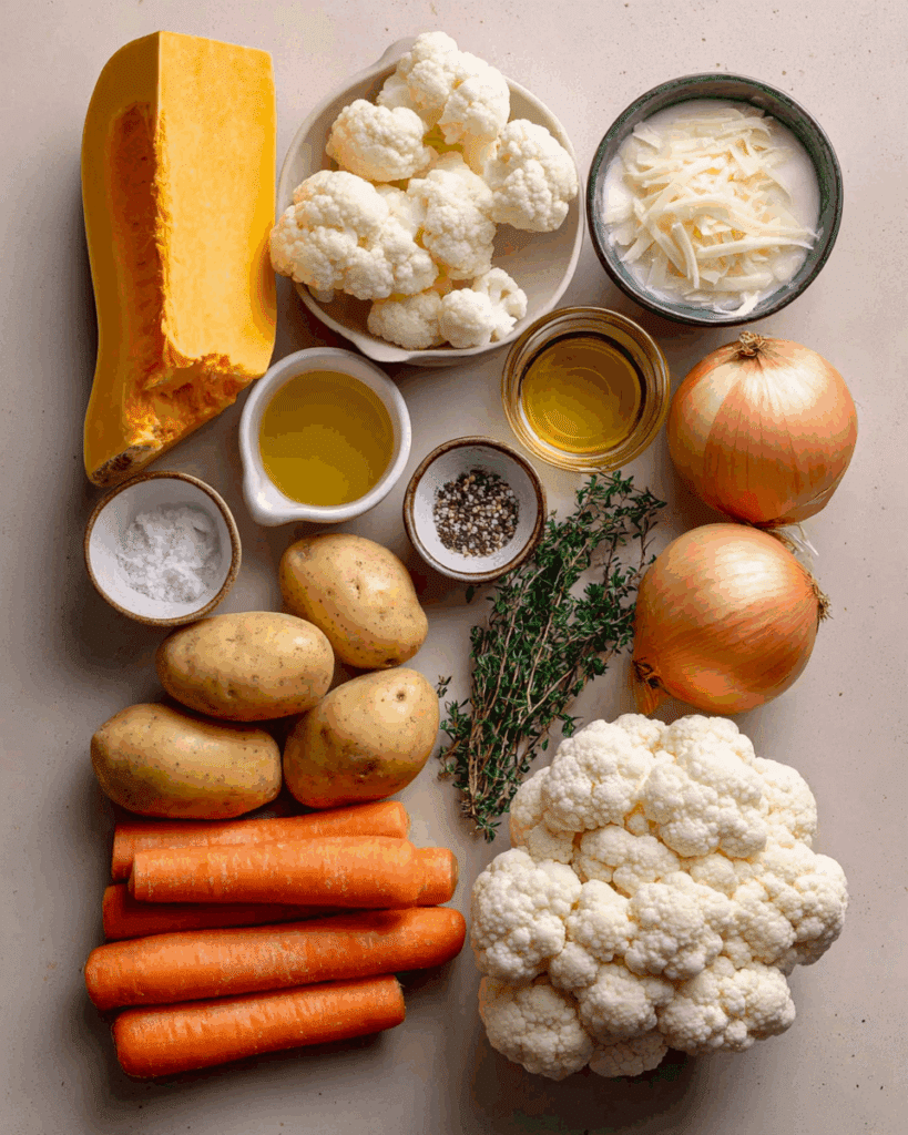 This recipe was born out of a lazy Sunday afternoon. The kind where the fridge is stocked with leftover market veggies and all you want is something warm and bubbling from the oven. It started with some butternut squash and cauliflower, a few potatoes, and a hunk of cheese begging to be used. Over the years, it’s become one of those staple dishes we return to every fall. It’s rustic and simple, but incredibly satisfying.