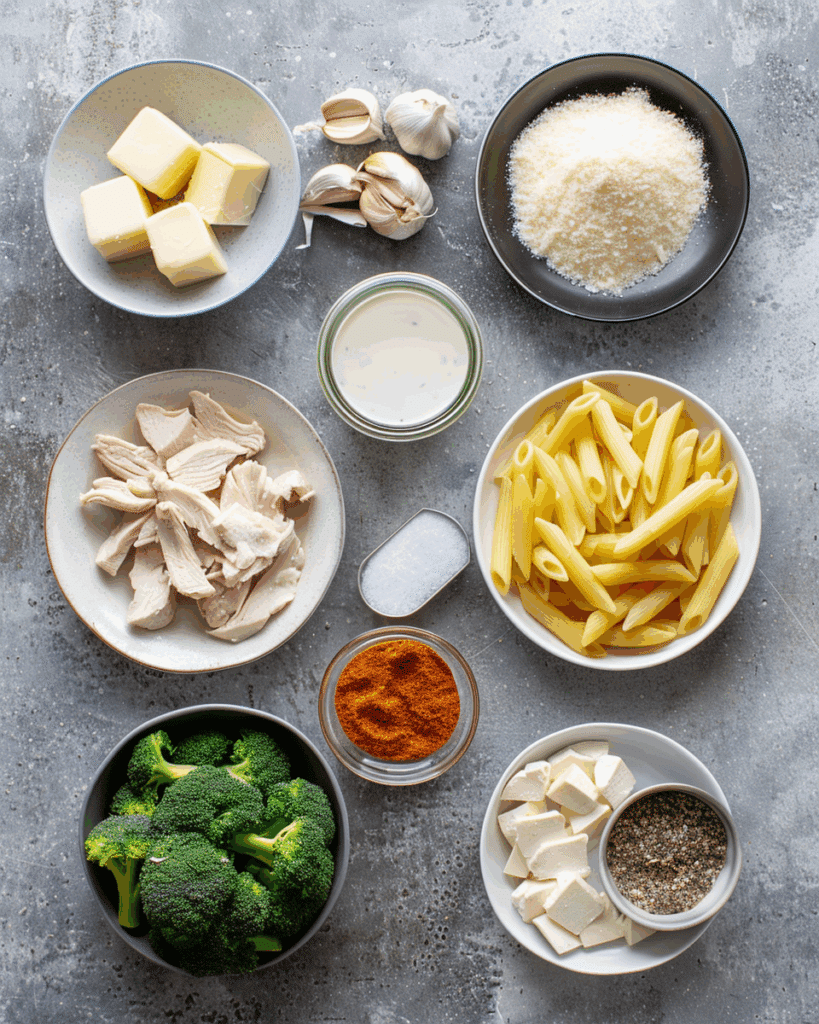 Ingredients in Chicken & Broccoli Alfredo Bake
