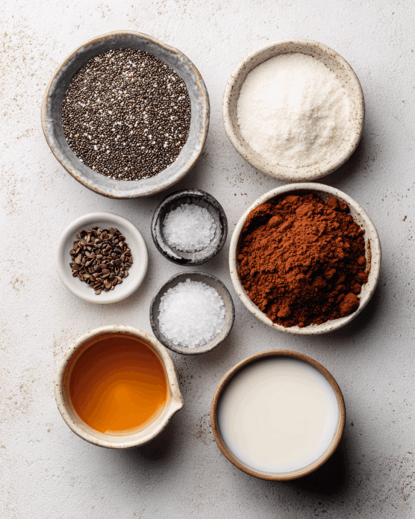 This recipe is all about harmony—chocolate, sweetness, and the unique gel-like texture of chia. Here’s what you’ll need: