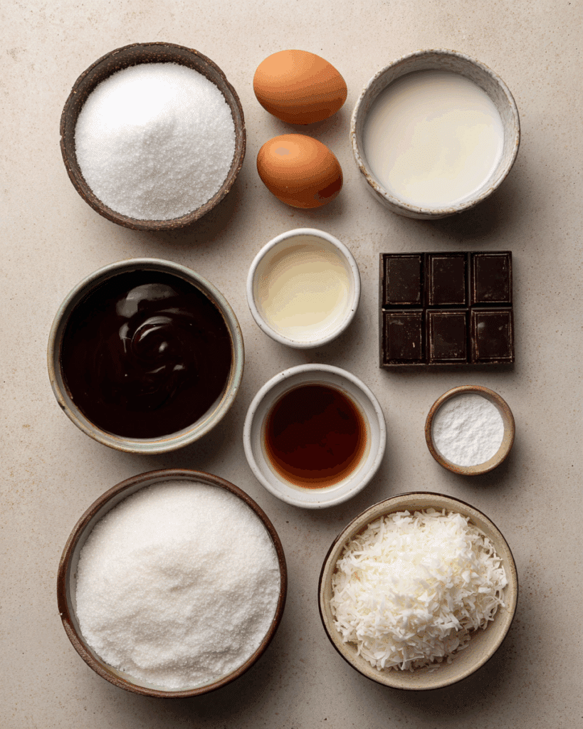 What makes this flan truly special is the harmony between rich chocolate and light coconut. Here’s what you’ll need: