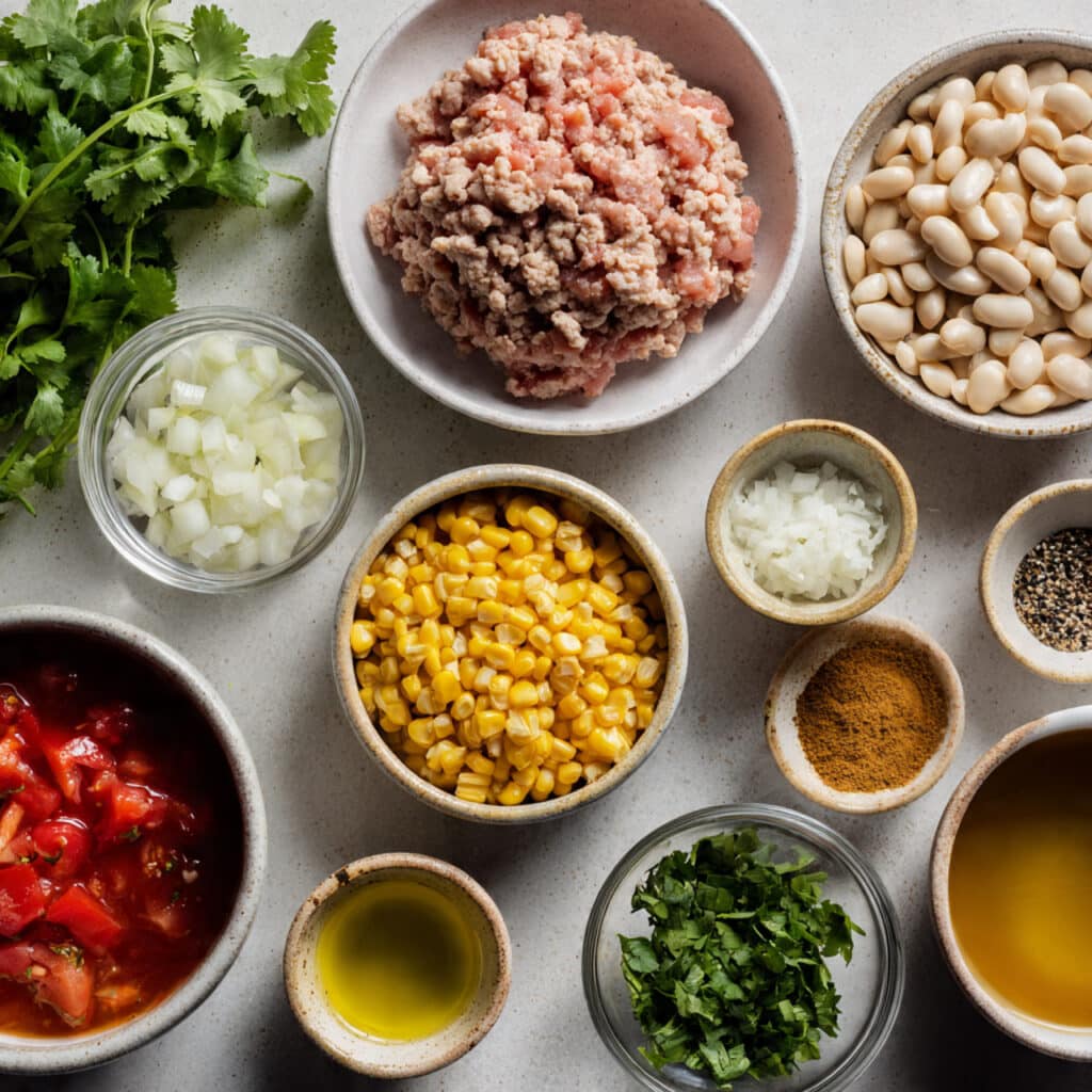 Ingredients in Christmas Eve Turkey Chili with White Beans & Corn
