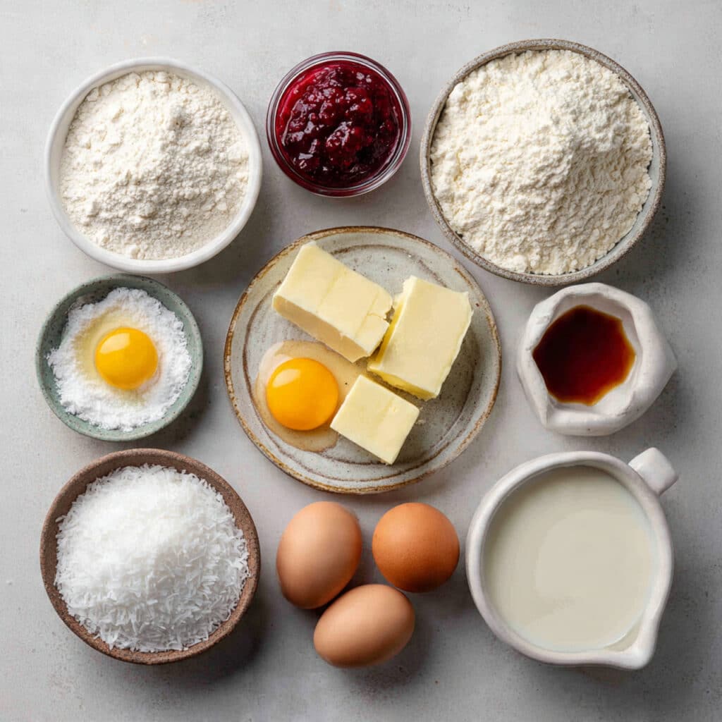 - Raspberry Jam: 150g – A fruity, sweet layer that contrasts beautifully with the sponge and coconut.
