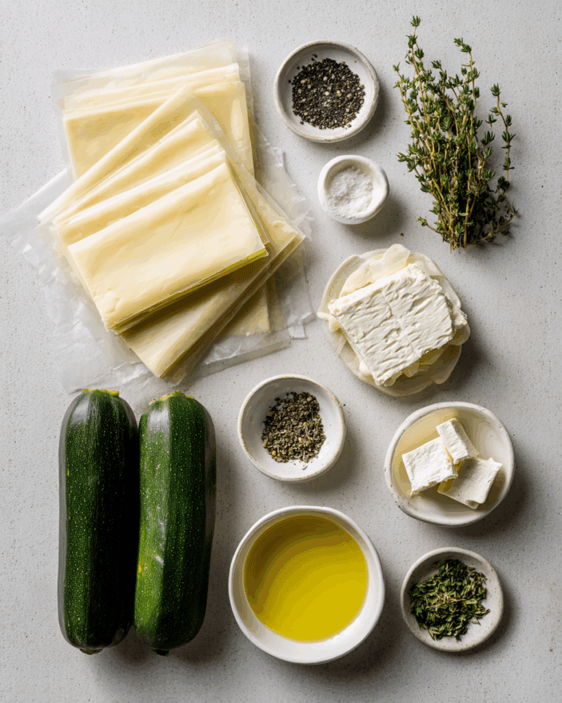 Brie: This soft, creamy French cheese melts beautifully and adds richness without overwhelming the dish. Its mild, buttery taste pairs perfectly with the delicate filo and tender courgette.