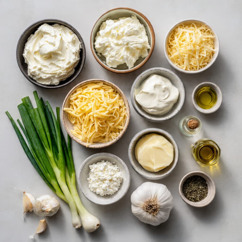 Ingredients in Creamy Baked Double Cheese and Onion Dip