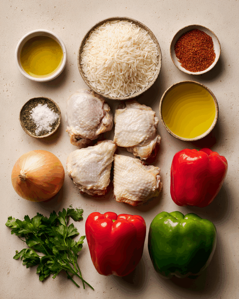 What makes this dish irresistible? The contrast. The chicken’s crispy, spiced skin cracks under your fork, revealing juicy meat underneath. The rice, soft and soaked with spice and broth, carries notes of smoky paprika and caramelized onion. Every bite delivers something different, yet cohesive.
