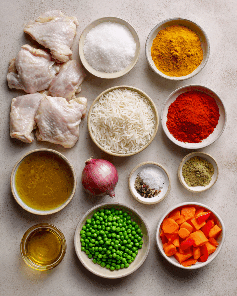 This recipe was born out of a craving for something hearty, flavorful, and easy enough to throw together on a weeknight. I remember standing in my kitchen, staring at leftover rice and some seasoned chicken thighs, wondering how to make magic out of what I had. A little curry powder, a handful of frozen veggies, a splash of broth, and into the oven it went. What came out was nothing short of dinner gold — the rice fluffy and aromatic, the chicken infused with curry warmth, and every bite pure satisfaction.