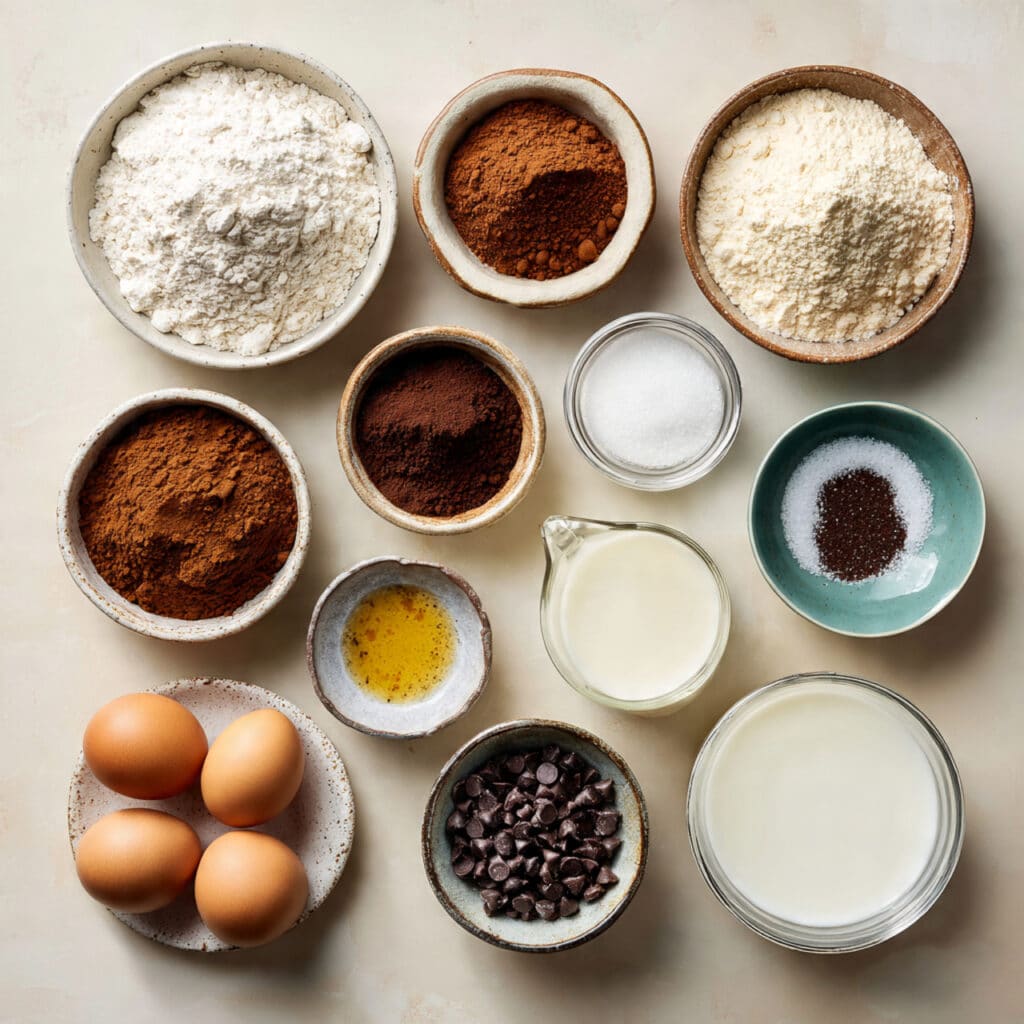 - Combine Ingredients: In a large bowl, whisk together flour, cocoa powder, granulated sugar, brown sugar, espresso powder, baking powder, baking soda, and salt.