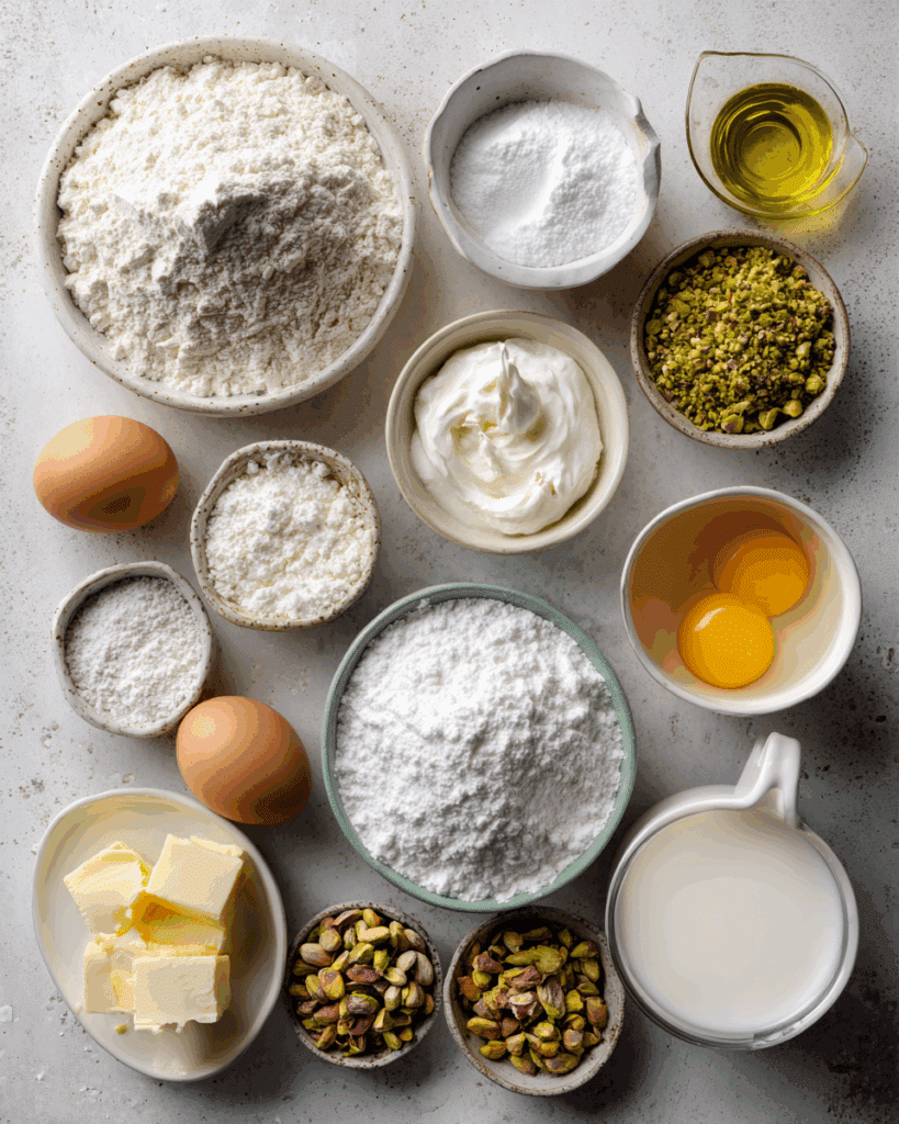 - Powdered Sugar: 2 tablespoons + Lightly sweetens the pistachio cream.