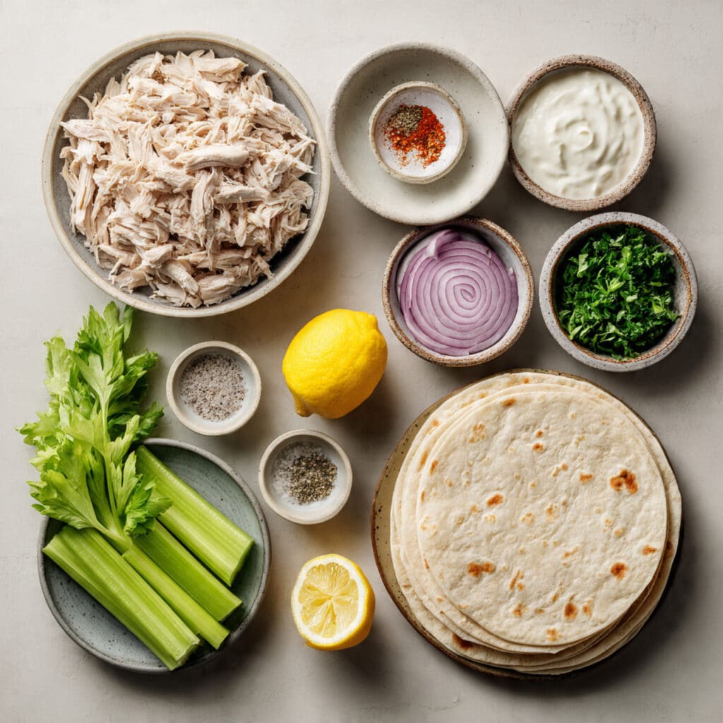 What I love most about these wraps is the texture. The yogurt dressing is smooth and rich, clinging to the tender chicken. Then you get that crisp snap from celery and the gentle bite of onion. The lemon brightens everything, while paprika adds just a hint of warmth. It is fresh, creamy, and satisfying all at once.