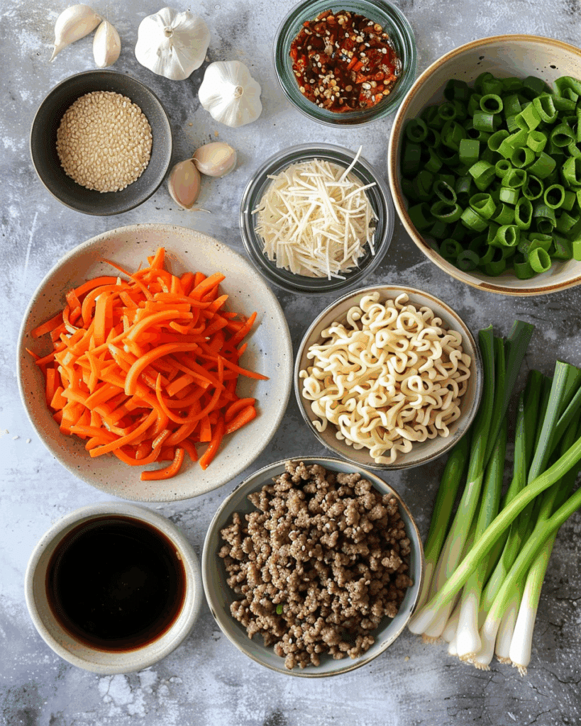 - Instant Ramen Noodles: 2 packs (discard seasoning packets), soft and chewy noodles that soak up flavor.