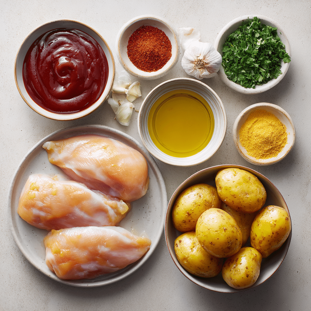The beauty of this dish lies in its contrast. The chicken is juicy with a sticky-sweet glaze that caramelizes into a gorgeous crust. Meanwhile, the potatoes are crunchy on the outside and fluffy on the inside — the kind of texture contrast that keeps you going back for just one more bite. The smoky undertones from paprika and BBQ sauce give it that slow-smoked flavor without the wait.