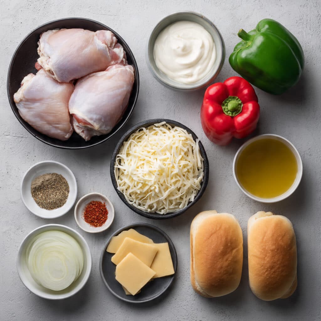 Ingredients in Hot Honey Chicken Cheesesteak Melt