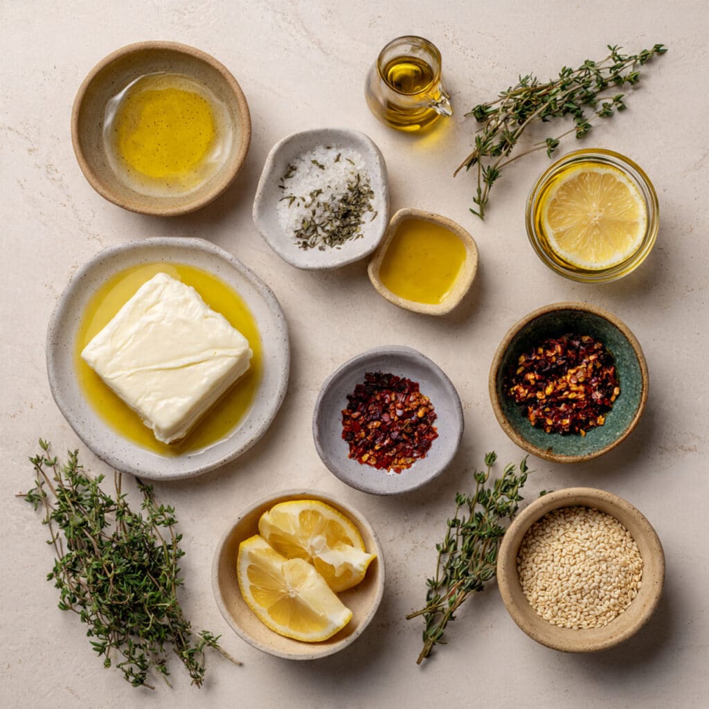 Hot honey mixture: The combination of honey, chili, lemon, and thyme creates a finish that feels balanced instead of overly sweet. It clings to the warm cheese and turns each piece into something glossy, sticky, and packed with flavor.
