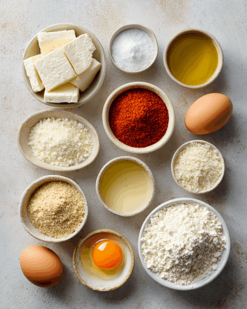 Every bite of this recipe is layered with flavor, thanks to the balance of creamy cheese, crisp coating, and sweet heat. Here’s what you’ll need: