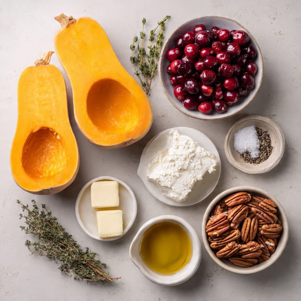 Ingredients in MAPLE ROASTED BUTTERNUT SQUASH with CRANBERRIES & FETA