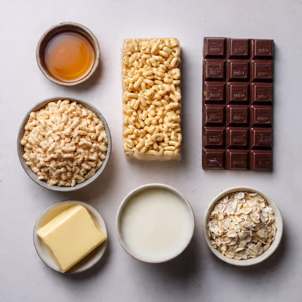 - Puffed Rice Cereal: 3 cups – Provides the crispy structure for the base and contrasts with the soft filling.