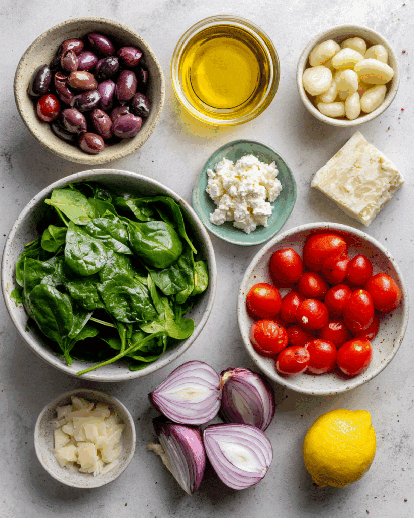 - Kalamata Olives: ⅓ cup, pitted and halved. A briny contrast that cuts through the richness.