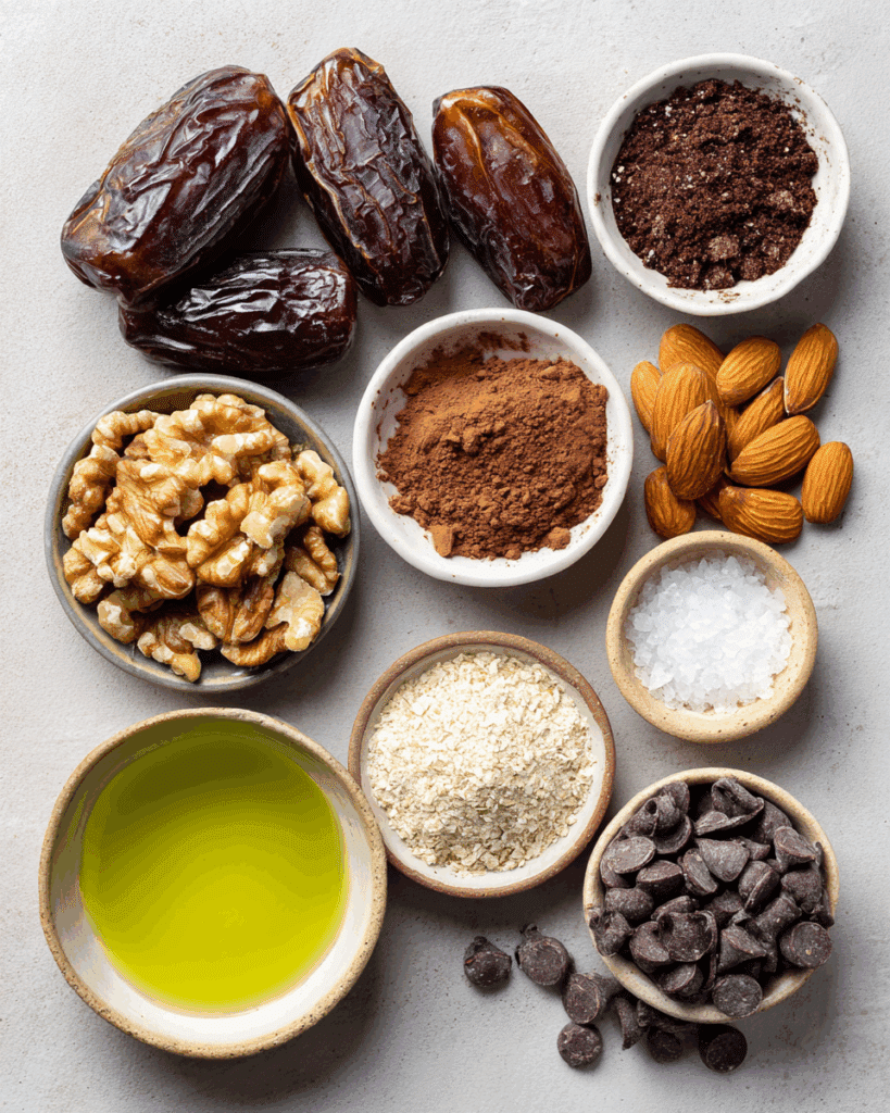 - Medjool Dates: 1 ½ cups (pitted) — naturally sweet and sticky, these bind everything together.