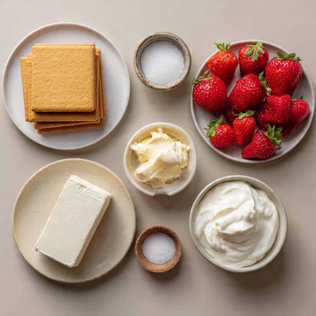 - Fresh Strawberries: 1 cup (sliced, for topping) – Bright, juicy finish to each slice.