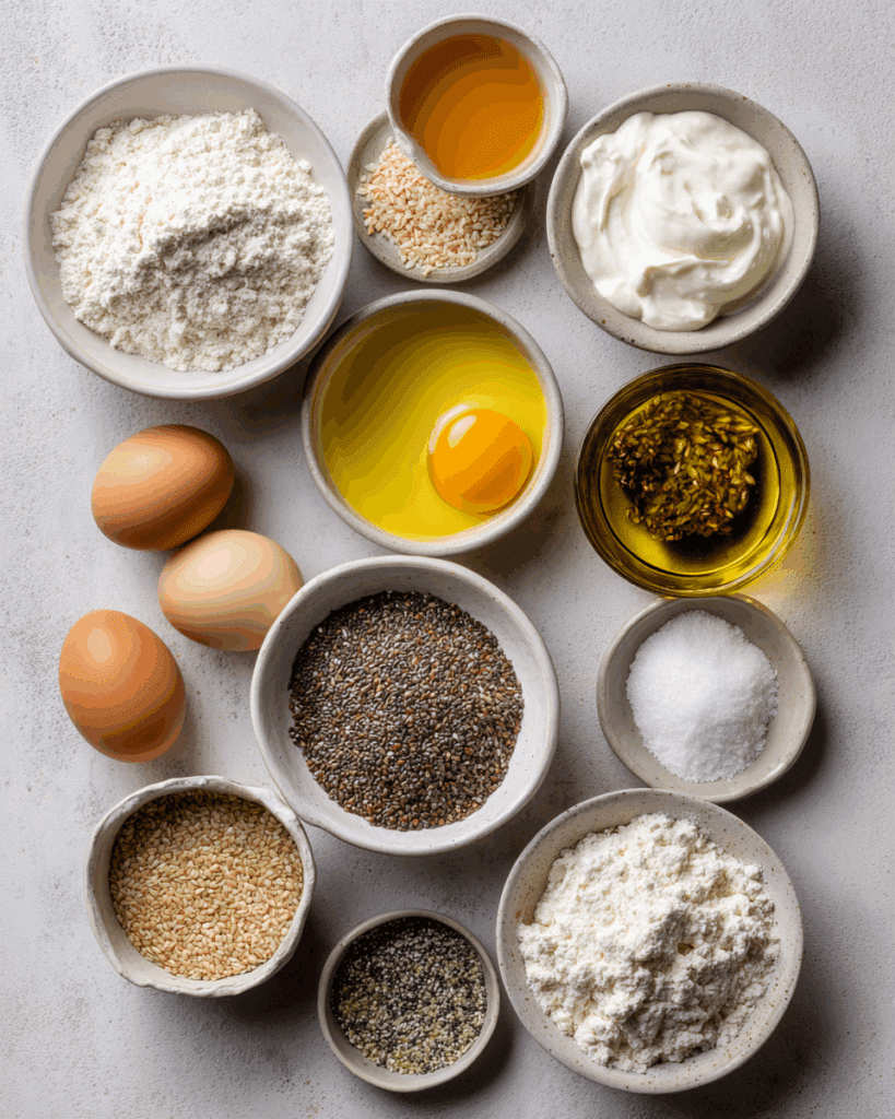 Eggs: Try flax eggs (1 tbsp flaxseed + 3 tbsp water per egg) for a plant-based version.