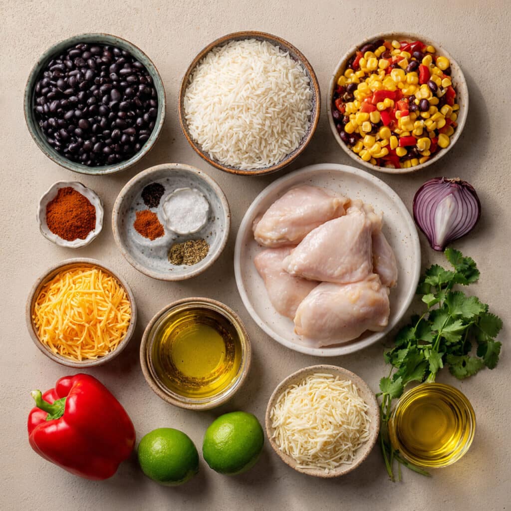 What makes this dish so special is the balance. You get tender chicken, fluffy rice, smoky spices, and pockets of sweet corn and creamy black beans. Then comes the melted cheddar that ties everything together in the most irresistible way. It is rich without being heavy, flavorful without being complicated.