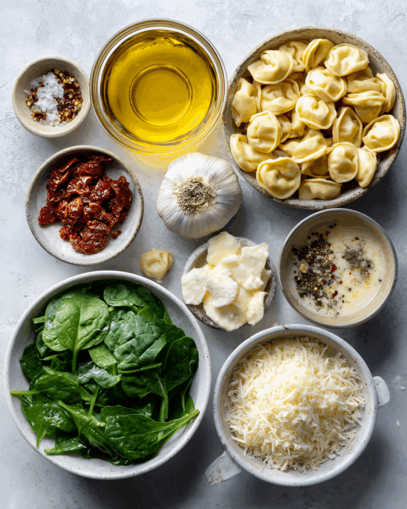 The magic lies in contrast. The tortellini are soft and chewy, while the sauce is rich, creamy, and bursting with herby warmth. Sun-dried tomatoes provide little bursts of tang and sweetness, while Parmesan rounds everything out with savory depth. Every bite is layered, luscious, and comforting.