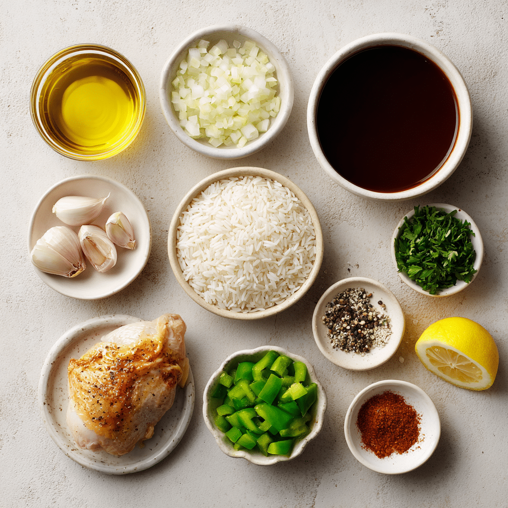 - Long-Grain White Rice: 1 ½ cups, cooks evenly and stays fluffy.