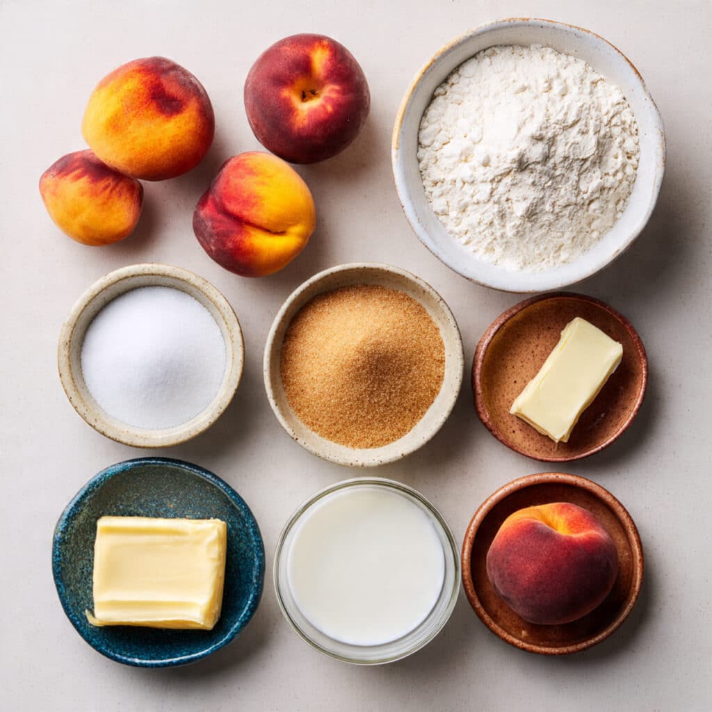 - Fresh Peaches: 6 cups sliced, they bring natural sweetness and juicy texture