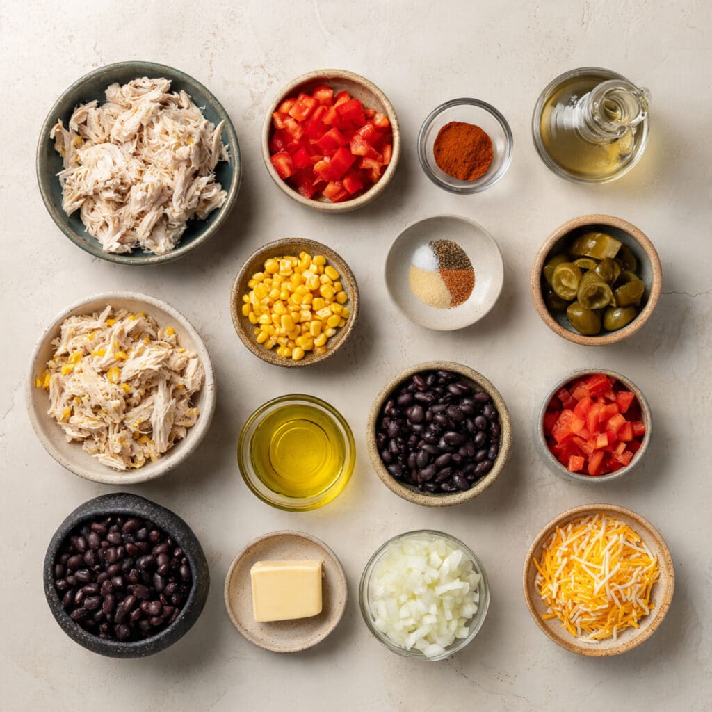 This chili was born from one of those “use what you have” kind of nights. Leftover chicken, some roasted corn from the night before, and a few cans of pantry staples magically came together with a generous scoop of shredded cheddar and a block of cream cheese. The result? A creamy, cheesy, crave-worthy chili that my family now asks for on repeat. It’s rustic, cozy, and somehow feels like a hug in a bowl. Perfect for game nights, chilly evenings, or just when you need something hearty and warm.