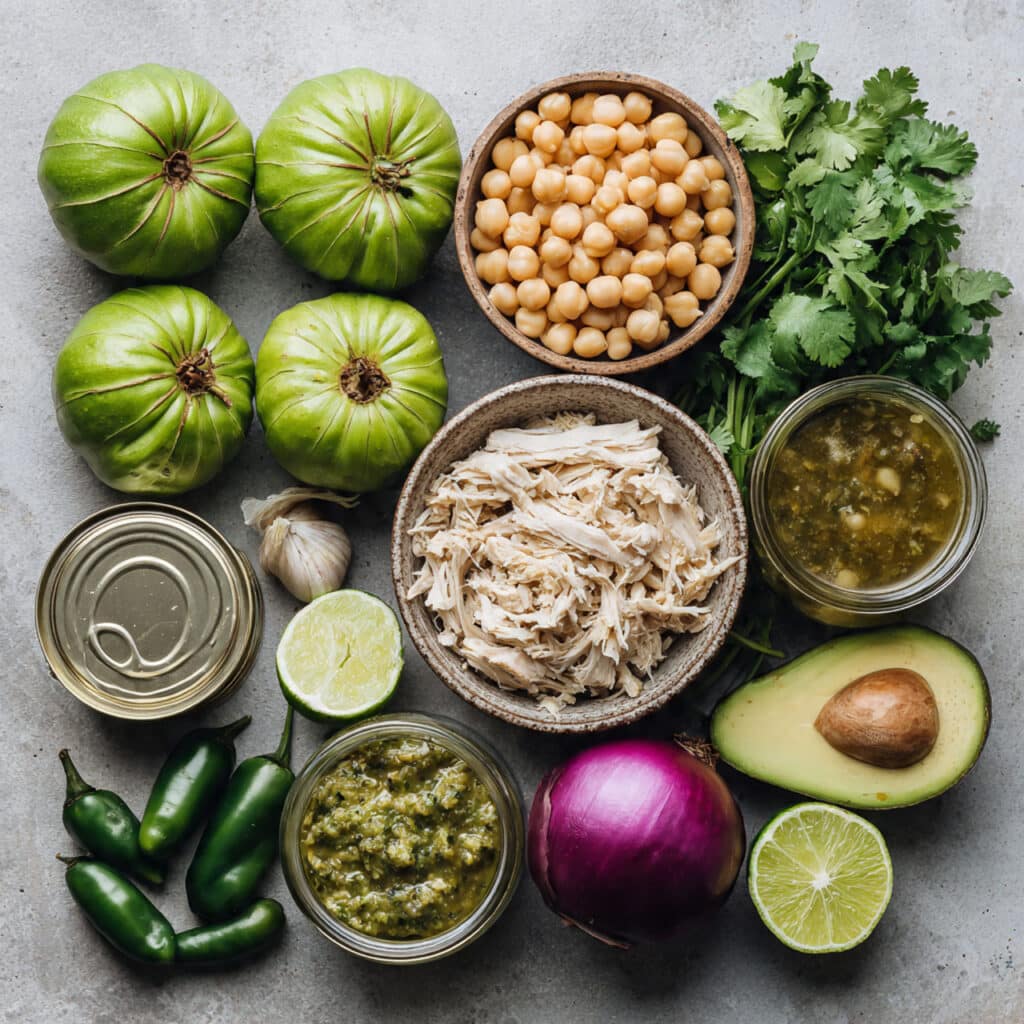 A comforting, flavorful soup made with air fryer roasted tomatillos, jalapeños, and garlic, blended into a tangy salsa verde and simmered with shredded chicken, chickpeas, and fresh garnishes like avocado and lime.