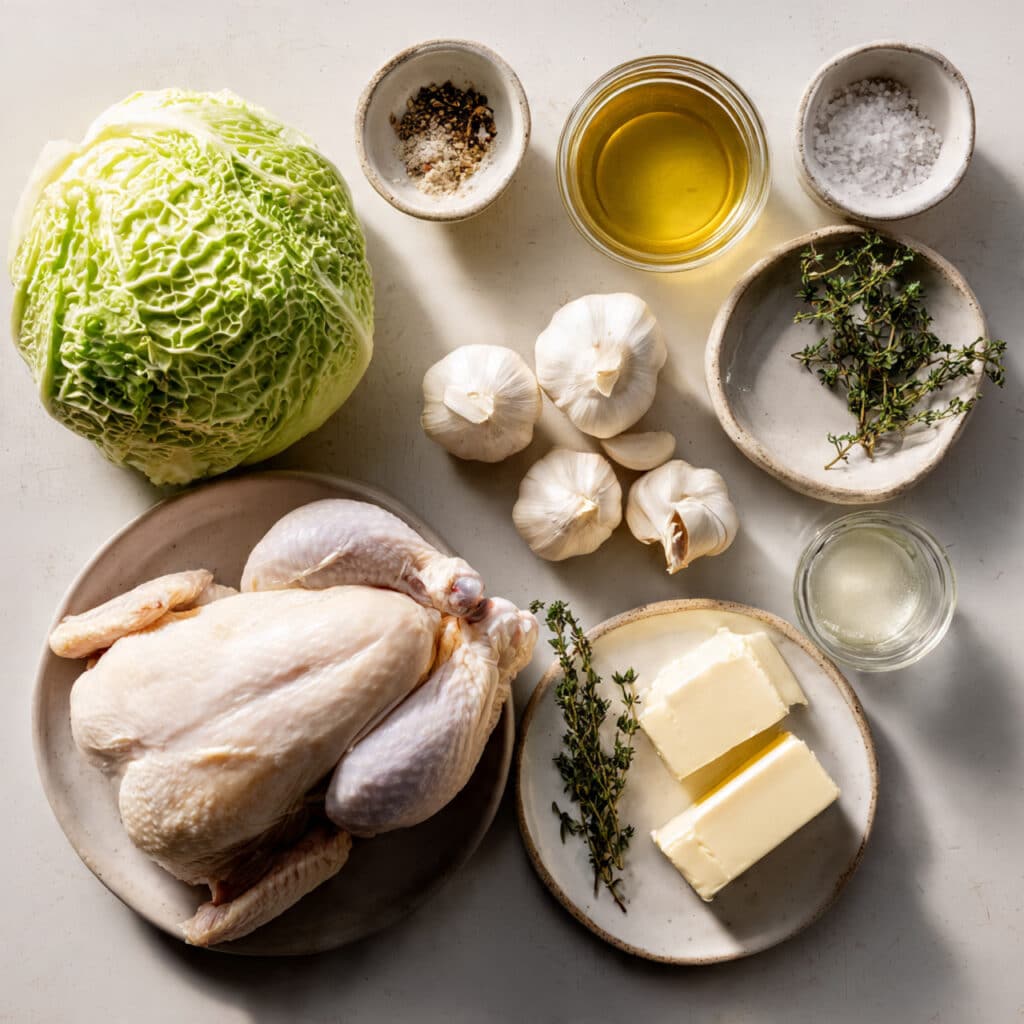 Ingredients in Roast Chicken with Schmaltzy Cabbage