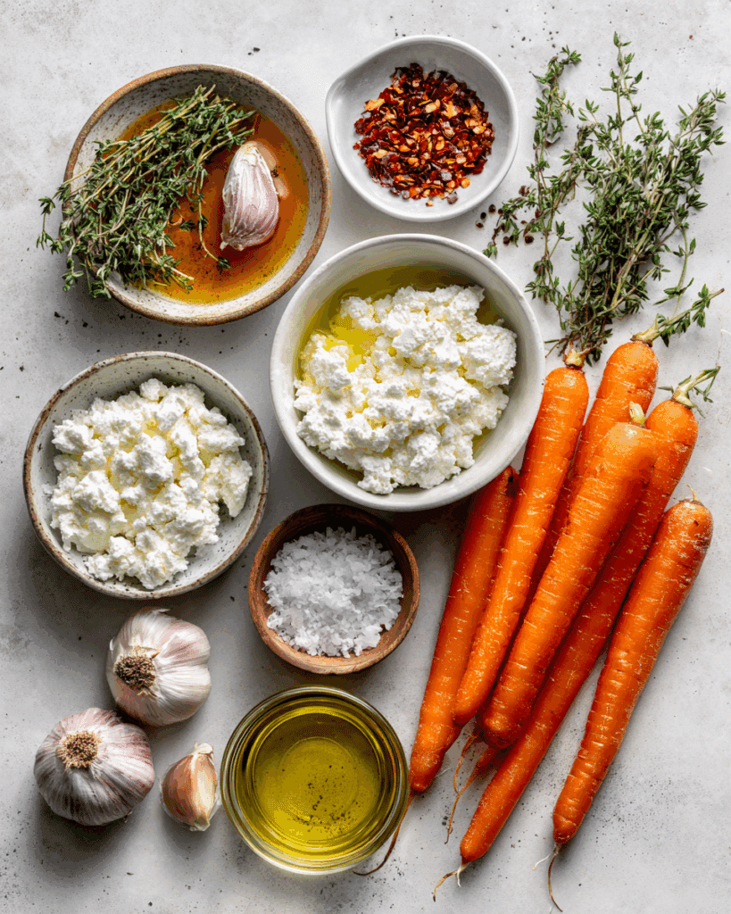 Ingredients in Roasted Carrots with Whipped Ricotta and Hot Honey