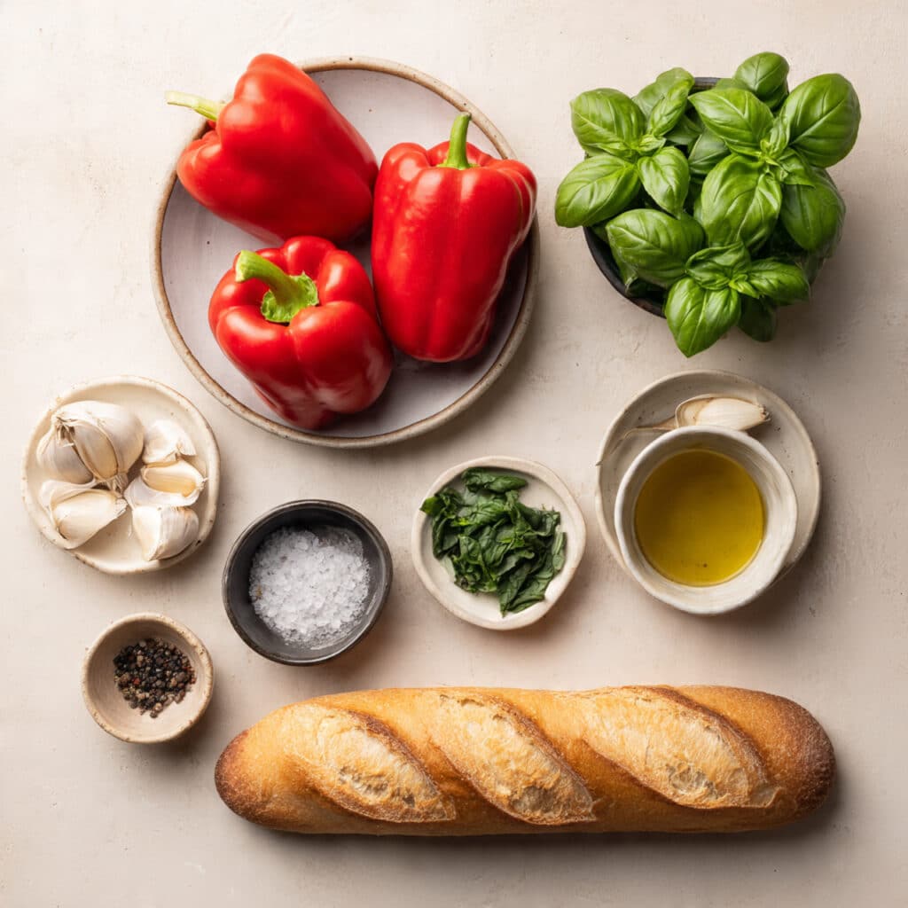 The magic here is in the contrast. You get the crisp crunch of toasted bread, the velvety smoothness of roasted garlic, and the tender sweetness of the peppers. Basil lifts everything with its fresh, peppery bite. Together, it’s a dance of textures and layered, bold flavors.