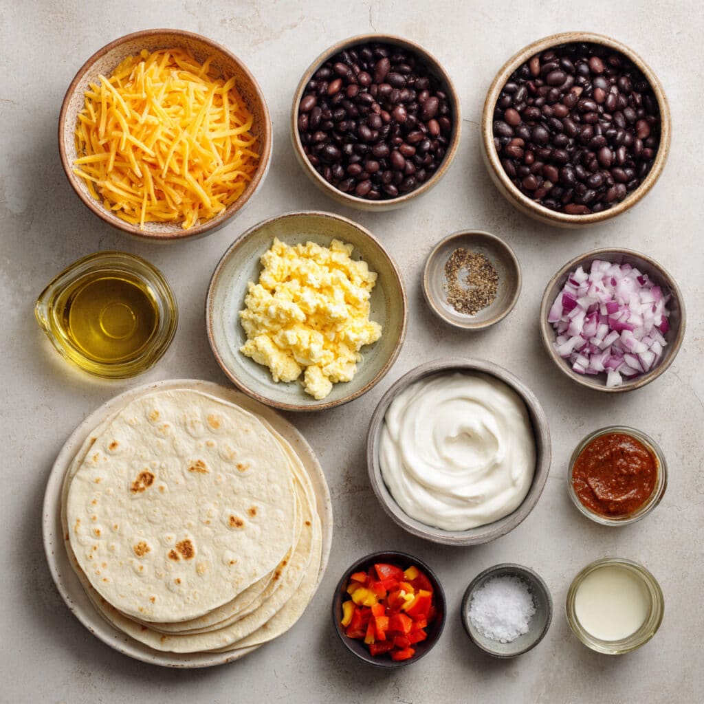 Ingredients in Sheet Pan Breakfast Burritos with Creamy Chipotle Sauce