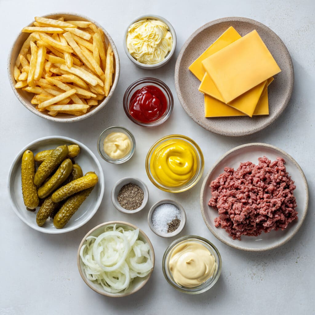 You know those meals that instantly make everyone gather around the table, even before you call them? This is one of them. It is messy in the best way, rich without being overwhelming, and every bite gives you that familiar burger flavor but with a crispy twist from the fries. Let me tell you, it’s worth every bite.
