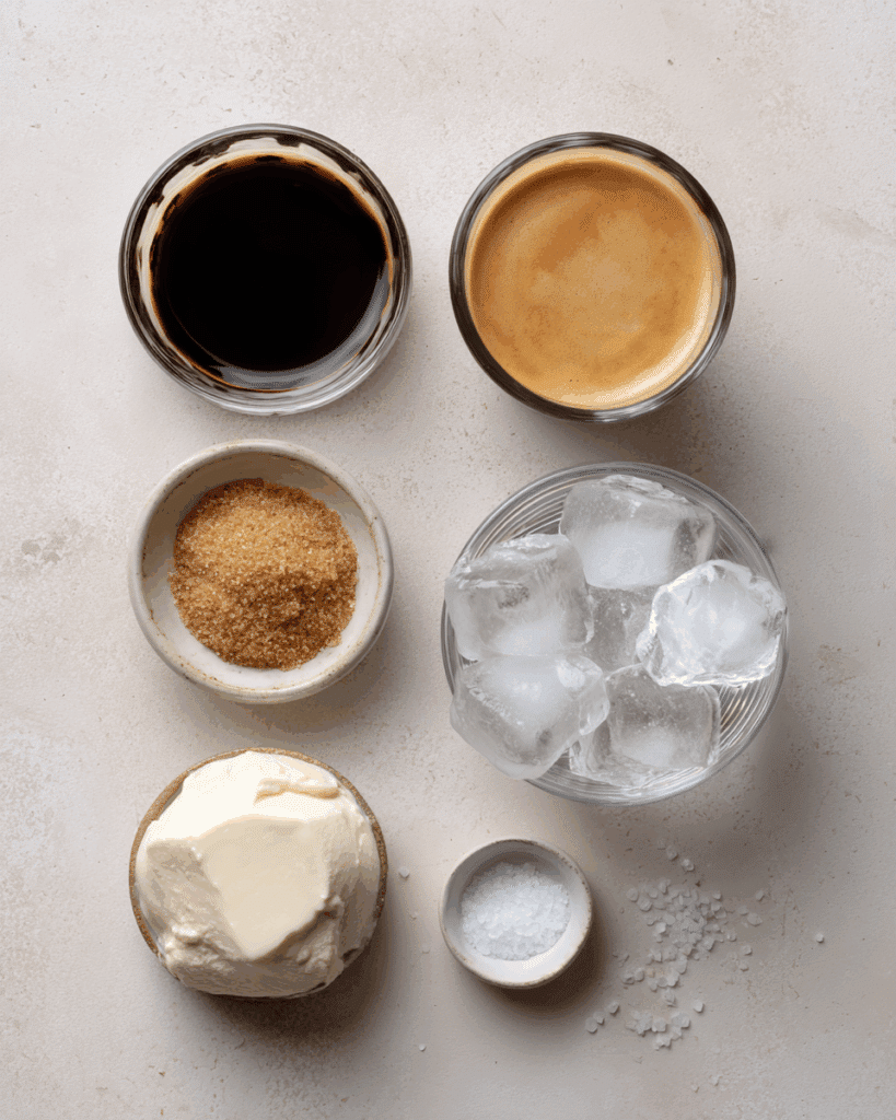- Combine Ingredients: Add espresso, sweetener, pinch of salt, and optional milk into a shaker or jar. Add ice if serving cold.