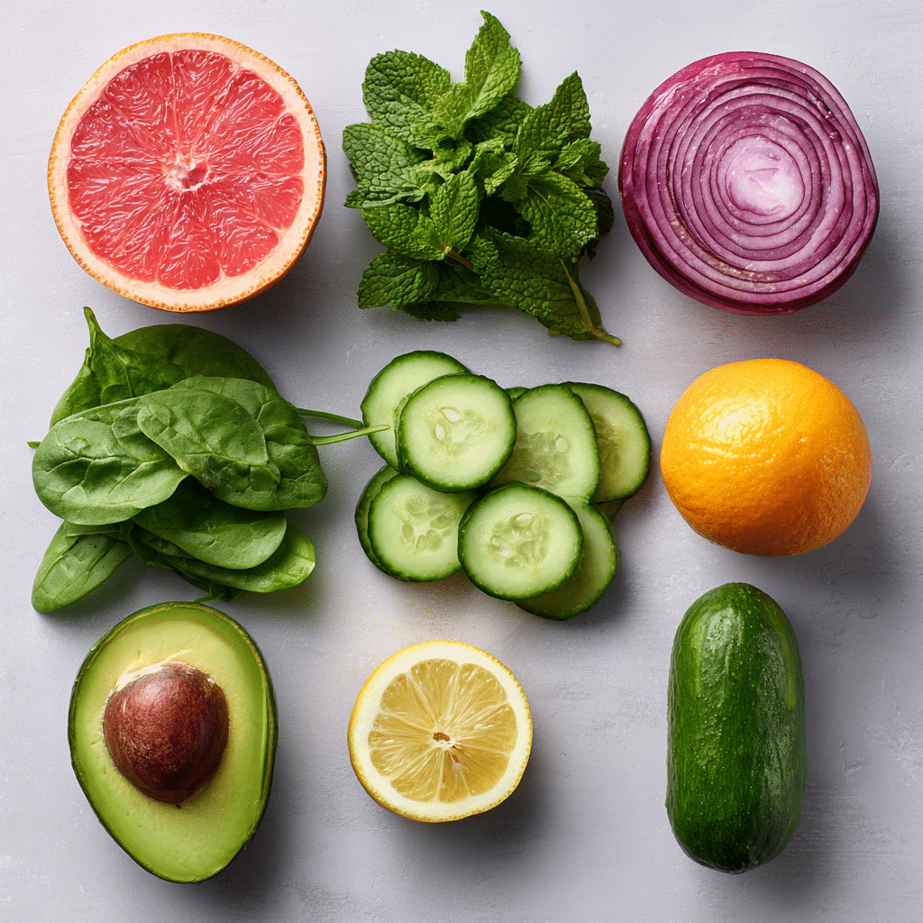 A vibrant and refreshing salad featuring creamy avocado, juicy citrus, and crisp greens, perfect for a detox-friendly meal that’s light yet satisfying.