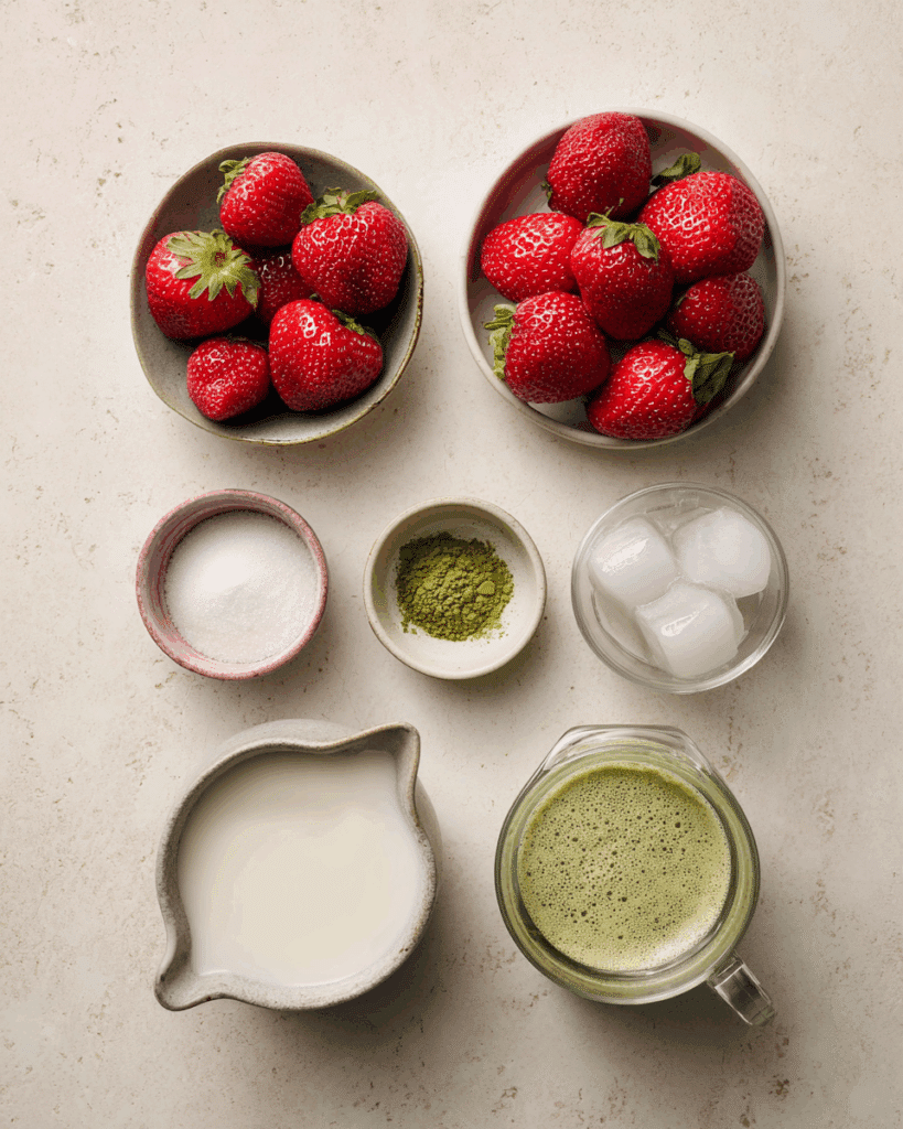 Matcha, a finely ground green tea powder from Japan, has been enjoyed for centuries in traditional tea ceremonies. Known for its vibrant color and calming effects, it’s now become a global favorite in everything from lattes to desserts. Combining it with strawberries isn’t traditional, but this modern twist blends the earthy umami of matcha with the bright sweetness of fresh berries—making it both refreshing and nostalgic.