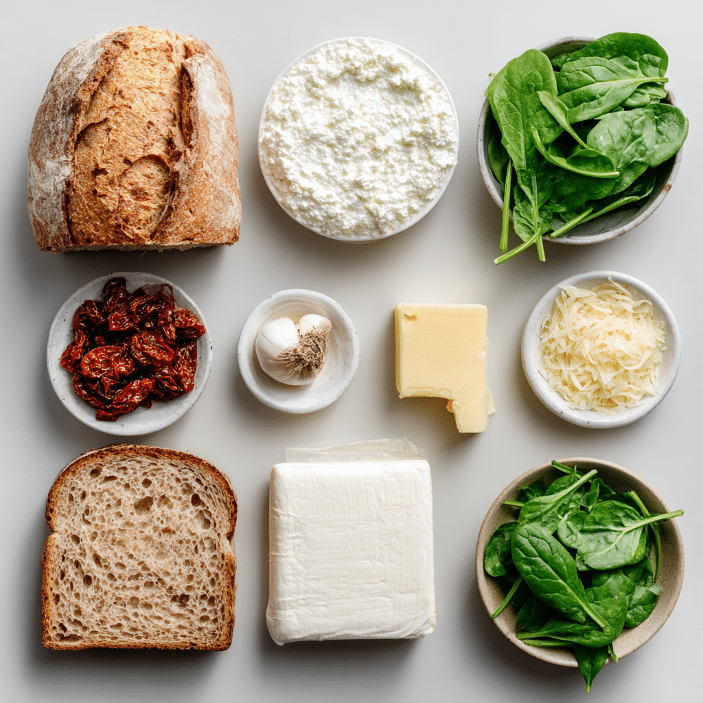 Ingredients in Sun Dried Tomato, Spinach and Ricotta Grilled Cheese