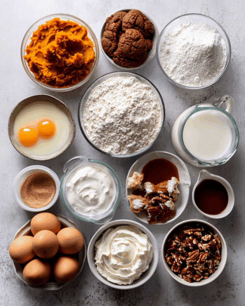 This cake is built on comforting ingredients that balance sweetness, spice, and texture: